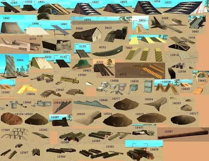 This page displays a subset of object model IDs that can be placed using the Map Editor, createObject and createBuilding.